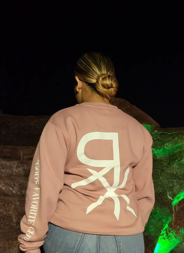 This Unisex Crewneck features a Pink color with a graphic print in White.