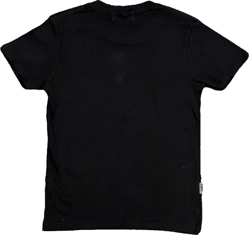 This kid's short-sleeved shirt features a Black color with an OG graphic print in White and Grey.